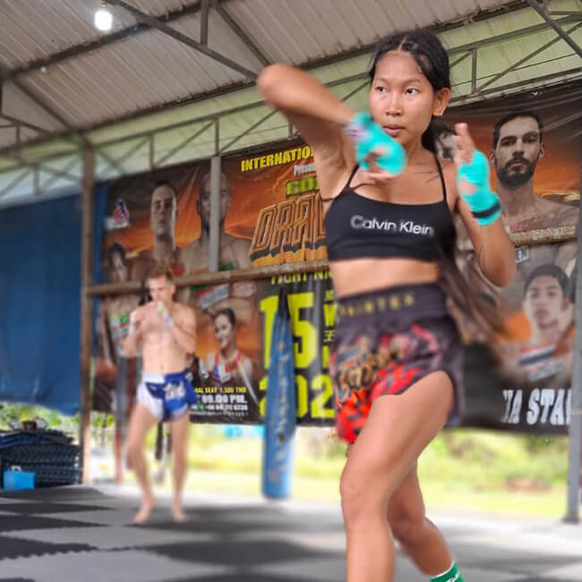 Erlebe intensives Muay Thai Training in unserem hauseigenen Gym in Klong Muang, nur 5 Minuten vom ruhigen Strand entfernt. Unter der Leitung von Kruu Dam, südthailändischer Champion mit über 300 Kämpfen, wirst du nicht nur physisch, sondern auch technisch auf ein neues Level gebracht. Trainiere auf über 200 m² mit Punch Bags und einem Ring, zudem kannst du von einer personalisierten Betreuung profitieren. Unser Camp-Paket beinhaltet eine komfortable Unterkunft in unmittelbarer Nähe des Gyms sowie täglich gesunde Mahlzeiten auf Wunsch – damit du dich voll aufs Training konzentrieren kannst. Neben dem Training erwarten dich nebst einer familiären Atmosphäre, traumhafte Strände, spannende Ausflüge in Thailands Natur und das Nachtleben in Krabi. Egal ob Anfänger oder Profi – bei uns findest du die perfekte Kombination aus Abenteuer, Kultur und Kampfkunst!
